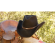 Chapeau en forme adaptable de très belle qualité avec tresse en cuir et plume sur le coté.